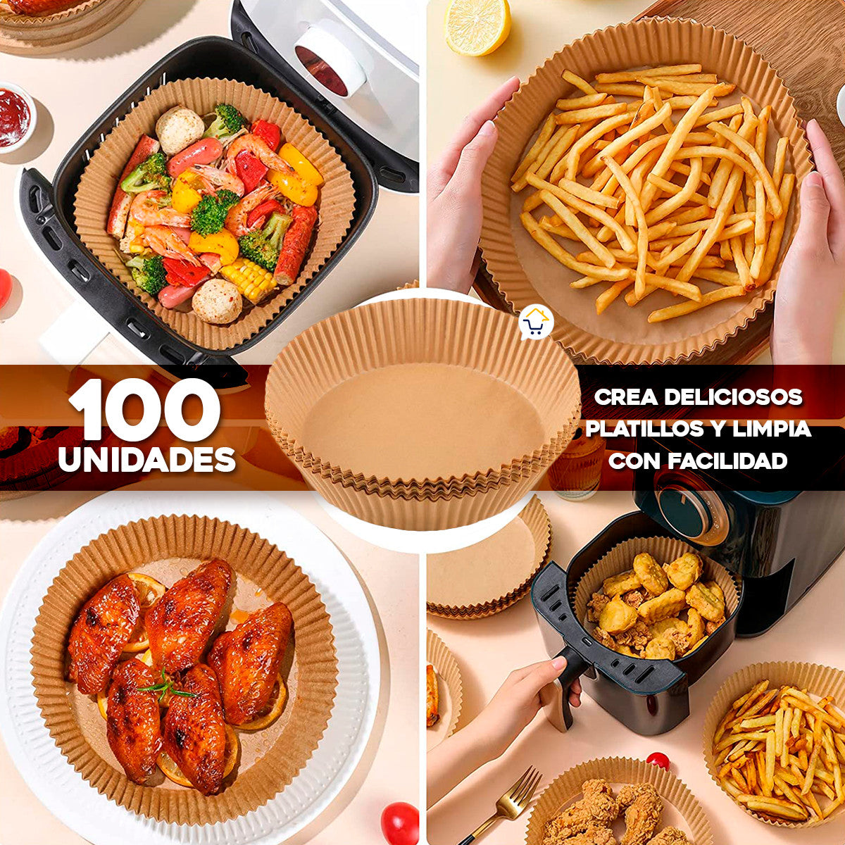 Material: Papel pergamino.Tamaño Aprox. Producto: 6 x 16 x 16 cm Peso: 164 g. El papel pergamino de grado alimenticio es impermeable y soporta hasta 428º F, manteniendo la grasa y restos de comida generados por la cocción en el papel y no en la freidora. Gracias a los materiales de fabricación, preserva eficazmente el sabor original de tus recetas sin contaminar el alimento.Ahorrarás tiempo y esfuerzo lavando tu air fryer ya que todos los restos de la preparación quedarán en el papel.Compatible con la mayoría de freidoras del mercado, su forma circular se adapta fácilmente protegiendo las paredes de la freidora de los restos de comida.No afecta el flujo de aire caliente al interior de la freidora permitiendo preparar los alimentos en el mismo tiempo y con resultados más saludables.Ámbito de uso: adecuado para freidoras de aire, hornos microondas, hornos, vaporizadores, utensilios de cocina, etc. Los papeles se pueden utilizar para hornear, freír o servir en casa, camping, asados y mucho más.Contenido del paquete:100 papeles antiadherentes para freidora.100 % Nuevos.