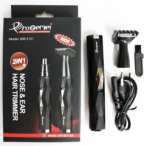 Recortadora de gran tamaño para barba.- Patillas y pelo largo.- Recortadora pequeña para cabeza de nariz, oreja y pelo corto.- 2 cabezas reemplazables: eliminador facial de pelo, cortador de pelo de orejas y nariz, maquinilla de afeitar de cejas.- Tamaño fácil y fácil de transportar: tamaño pequeño y ligero, cuerpo del cuerpo práctico para llevarlo a cabo y viajar con usted en la bolsa de cosméticos.- Sin complicaciones: el tiempo de funcionamiento inalámbrico es de hasta 30 minutos, cumple con su rutina diaria.Hoja de acero inoxidable.Corta el pelo muy fácil. Recortador de pelo 2 en 1 para nariz y orejas.Cabeza de la nariz.Cabeza recortadora pequeña. Recortador de cejas.Voltaje: 220-240V 50 / 60Hz 3W.Sistema anti-clip inteligente.Motor de alta velocidad.interruptor encendido / apagado.